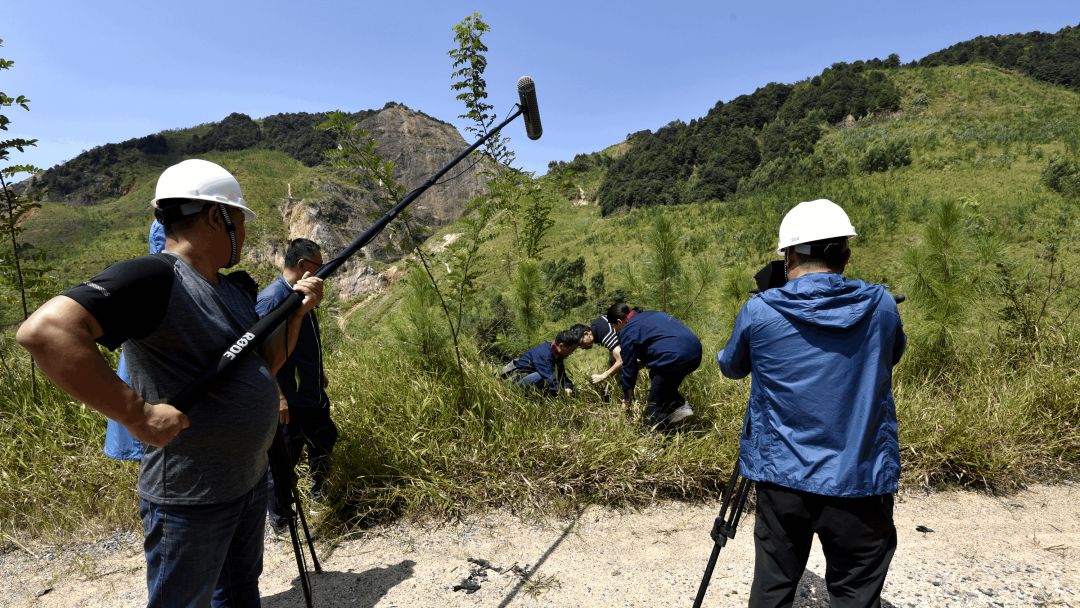 为了更好的展现公司在生态治理方面取得的成绩,摄制组还邀请了公司环保部、党委工作部及新山项目施工单位广东桃林公司负责人一起拍摄情景重现,以更加生动的画面展示出当年生态修复的过程和今天的修复成果。