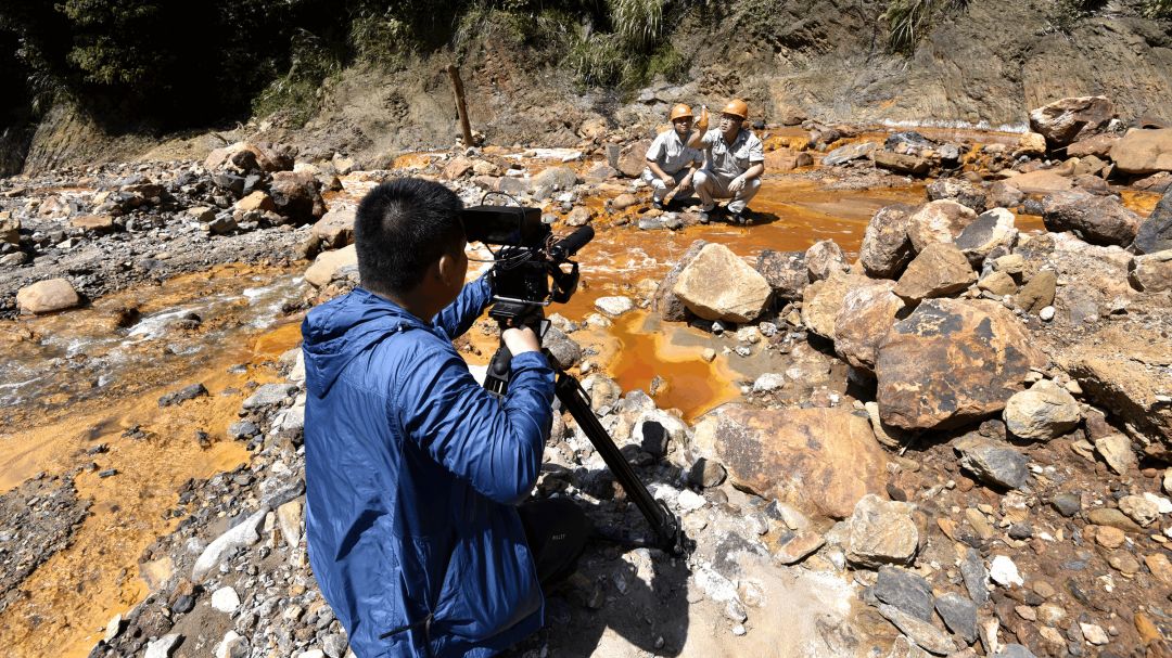 摄制组利用一天的时间先后到公司李屋外排水处理厂、新山历史遗留矿山进行了采访。拍摄了环保管理部的同志和参加生态环保工作的施工队伍日常工作中的场景,并就生态修复技术采访了中山大学生命科学学院博士生导师黄立南教授。