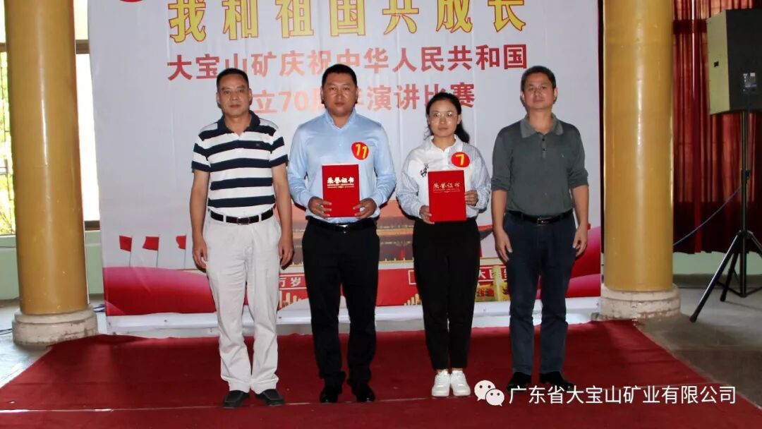 各位选手准备充分,专心投入,演讲富有起伏变化、催人奋进、引发共鸣,现场观众都被他们饱满激昂的情绪深深感染,不时爆发出热烈的掌声。经过激烈地角逐,社工部选手龙武娇荣获比赛一等奖,财务部选手孙艳艳和采矿部选手孙庆富获得比赛二等奖,生产部选手文闻、选矿部选手刘营华和广宝化工选手王庆年获得比赛三等奖,其他选手获得比赛优秀奖。最后,演讲比赛在大家共唱一曲《我和我的祖国》中圆满结束。