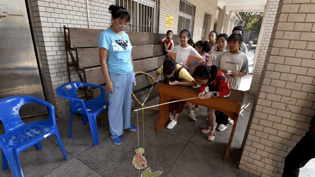 在猜灯谜处,高年级的孩子们专心地盯着挂在细线上的谜语纸条,时而蹙眉,时而会心一笑,随后拿着谜题来到兑奖处,激情高昂的说出自己心中的答案,答对的拿了奖券再接再厉,没答对的继续开动脑筋,每个人都沉浸其中,尽情的享受这欢乐的时刻。