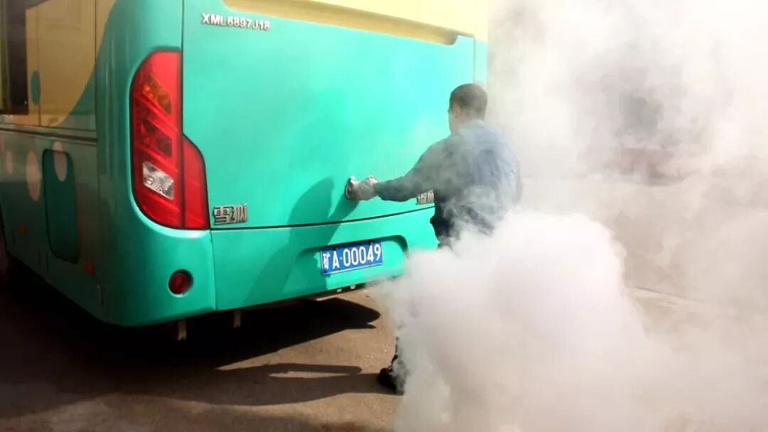 客车内冒出浓烟