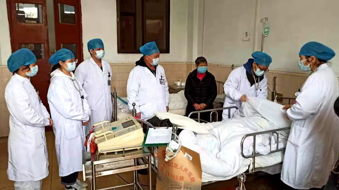 上图为吴焕文(左四)诊治住院病人
