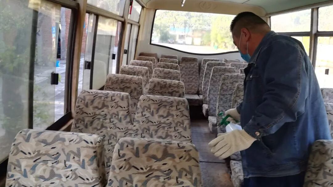 1月27日晚班下班后,邹志坚带领司机对车辆进行收车后安全检查并消毒,他发现只用抹布和拖把浸透消毒药水后来擦拭消毒会存在卫生疏漏,且会大量耗费消毒液。他马上和工作人员深入探讨想出办法,第二天就购置了一批专用喷壶,将药水装入喷壶后进行“喷雾”式淋洒,特别对座椅的靠枕、扶手处和车窗缝隙处进行多次喷洒,保证每班次车辆都得到全面消毒。正是有了客车队工作人员的坚守与担当,客车队顺利完成了春节期间职工上下班的接送任务,安全行车与防疫工作两手抓两不误,得到了职工群众的好评。