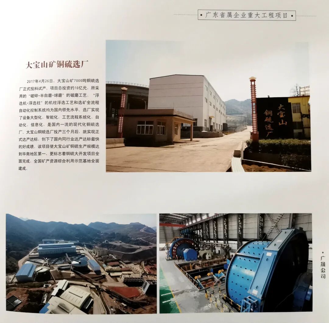 大宝山矿铜硫选厂项目入选《成果汇编》中的“广东省属企业重大工程项目成就展”。