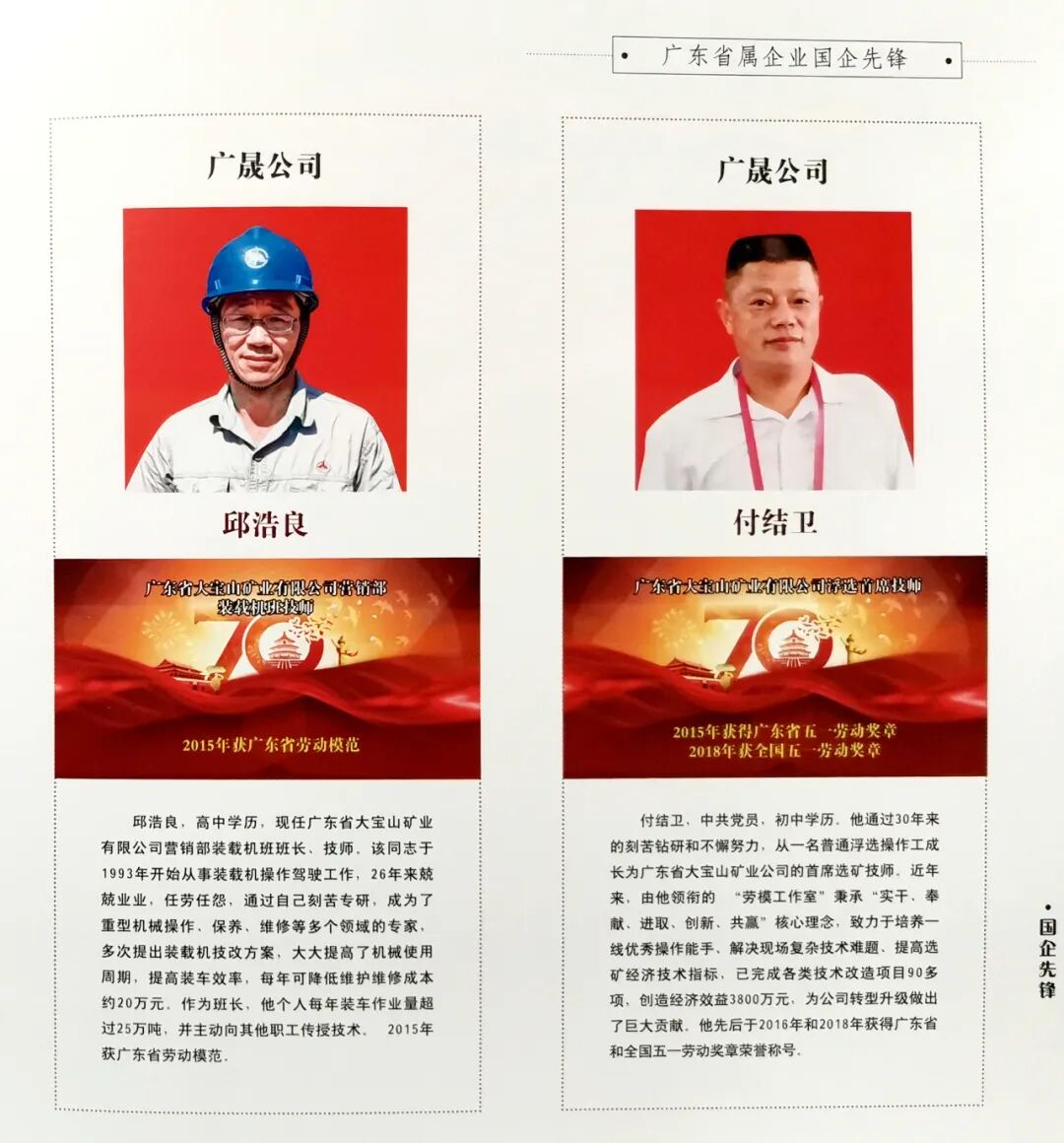 付结卫、邱浩良两位劳模入选《成果汇编》中的“广东省属企业国企先锋荣誉榜”。