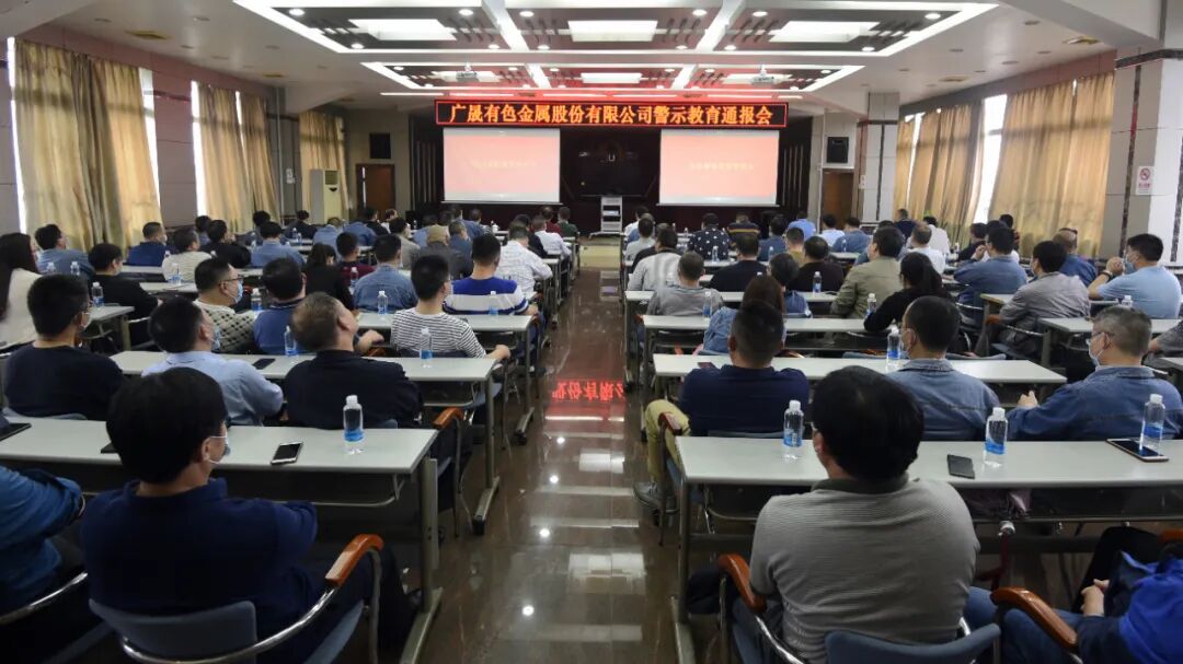 4月21日,广晟有色召开警示教育通报视频会议,公司领导班子与各部门中层以上领导、机关各部门副科以上人员在办公大楼七楼会议室参加视频会。