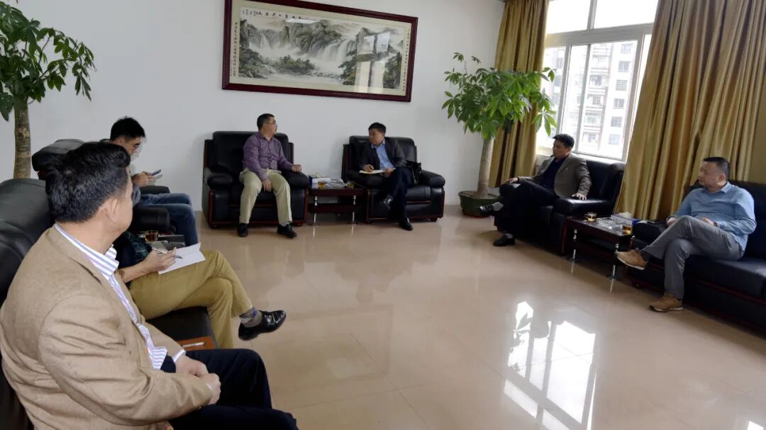 4月24日,曲江区税务局局长谭林一行到公司调研,深入了解疫情防控期间企业生产经营情况,全面收集企业涉税需求,并宣讲国家相关税收优惠政策。公司副总经理陈晔、财务部领导在办公大楼四楼会客室与谭林一行进行座谈。