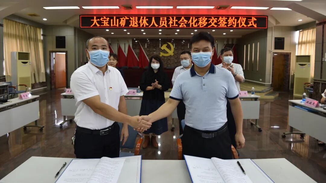 为深入贯彻落实党中央、国务院和省委、省政府的决策部署,全面深化国有企业改革,加快剥离国有企业办社会职能和解决历史遗留问题,平稳有序推进国有企业退休人员社会化管理,6月8日,在省国资委和市、区领导的见证下,大宝山矿正式与曲江区政府签订退休人员社会化移交协议,大宝山矿退休人员社会化管理步入新阶段。省国资委一级调研员刘敏、韶关市国资委主任张才明、广晟公司人力资源部副部长欧景慧、曲江区副区长黄华和广晟有色相关负责人、韶关市国资委相关领导、曲江区相关部门及沙溪镇领导出席仪式。