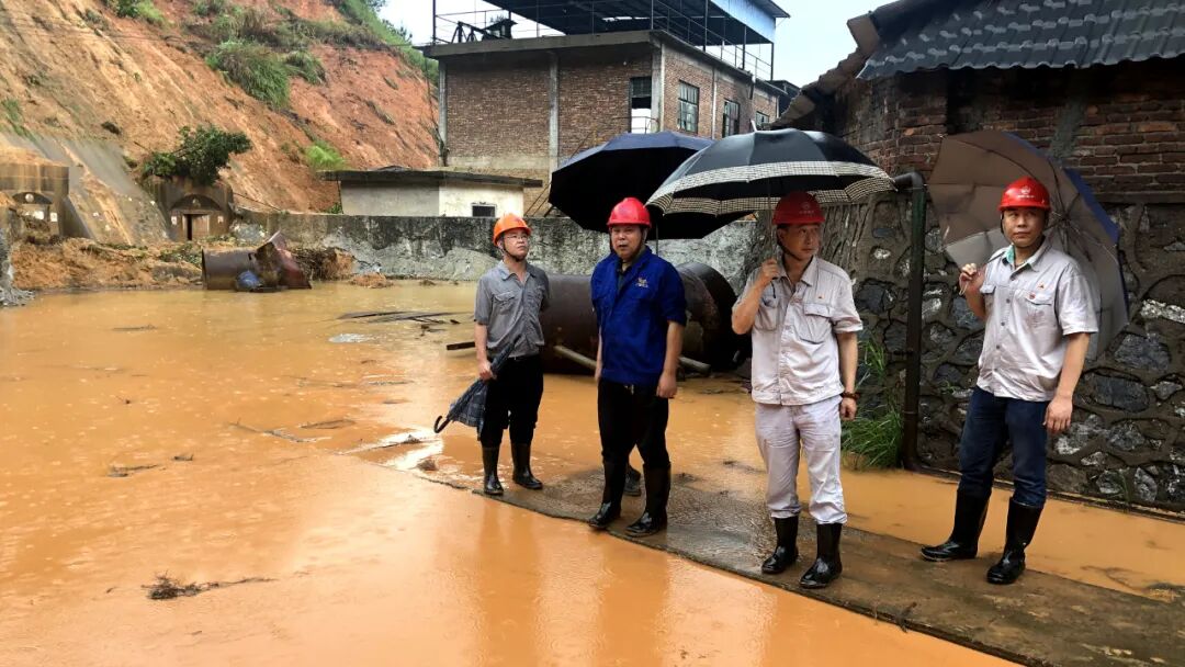 在东线公路受暴雨导致塌方处,巫建平等与安全管理党支部、生产部党支部、选矿部党委等党组织负责人进行了详细研讨,要求在场党员干部严守安全施工准则,尽快拿出处理方案,疏通被堵塞的交通要道,确保生产工作稳定持续交接。