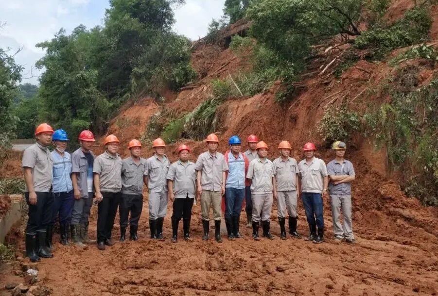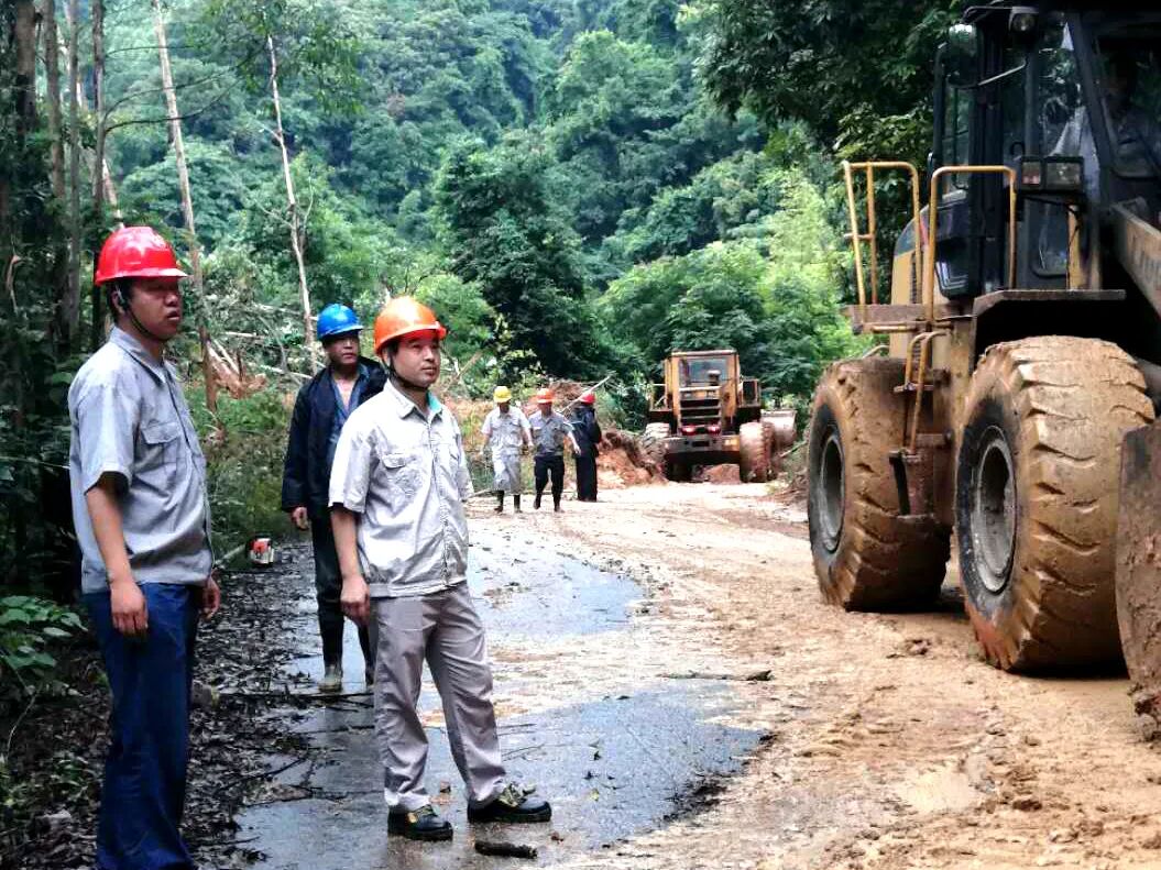 在西线公路,公司领导蔡建龙亲自指挥抢险救灾工作,要求采矿部党支部、选矿部党委做好排查工作,对发现的受灾点逐步开始修复。
