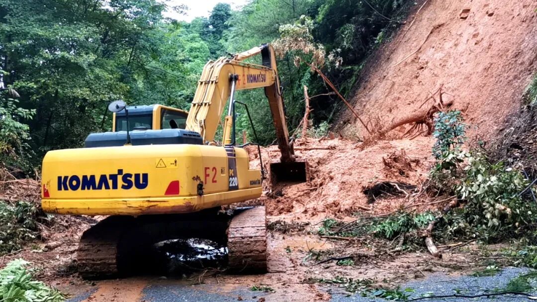 受灾现场,抢险人员纷纷迎难而上,不叫苦、不叫累,全面铺开道路抢通“作业面”,两支工作队伍一方面利用装载机+挖机共同清除塌方障碍,加快清理速度;一方面谨记安全守则,注意观察周围二次坍塌的风险,循序渐进开展机械作业,保证后撤安全道路畅通。