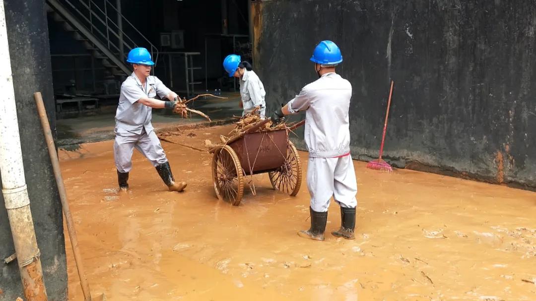 灾情就是命令。灾害发生后,选矿部党委立即与凡洞生产区现场值班领导雷继祖取得联系布置应对措施。雷继祖随即组织各车间科室值班领导及党员召开紧急会议,在认真分析本部门受灾形势后,果断采取了一系列抗洪抢险措施:一是立即联系饭堂为职工提供早餐;二是将当晚所有值班领导、维修工、电工集中管理,对生产设备进行全流程无死角巡查,尤其是加强对关键设备和高低压配电房、柜的巡查;三是合理调配操作工轮流休息;四是组织人员打通新尾矿库四号公路,清理清污分流沟内的淤泥。