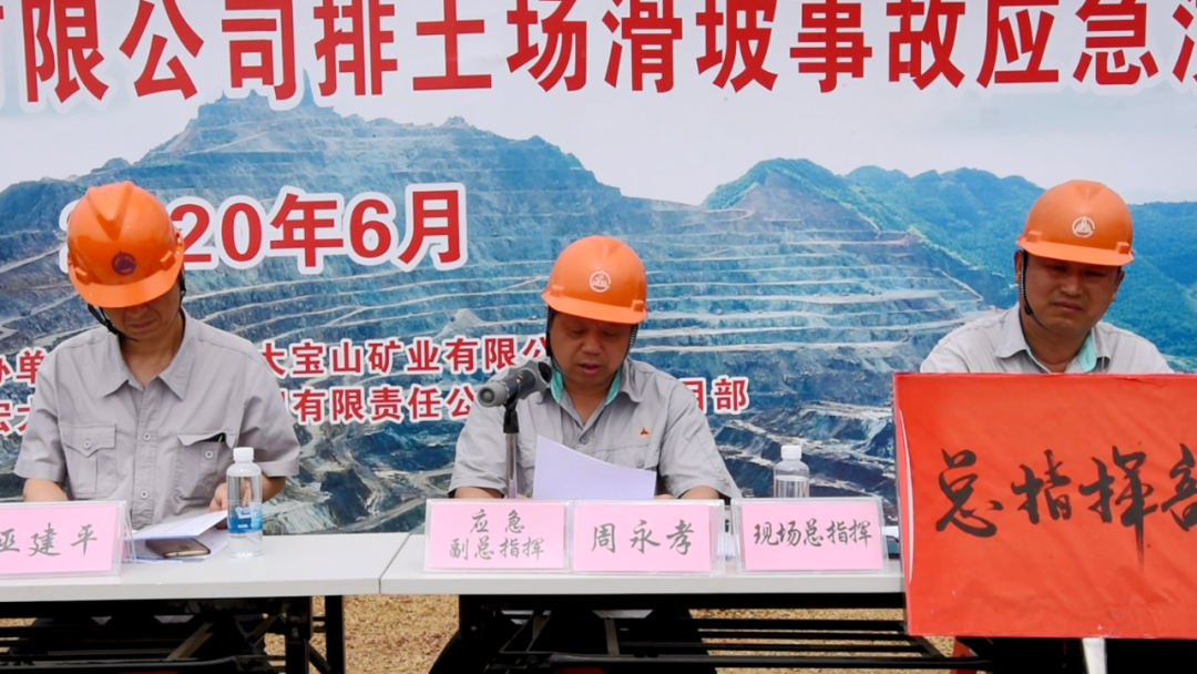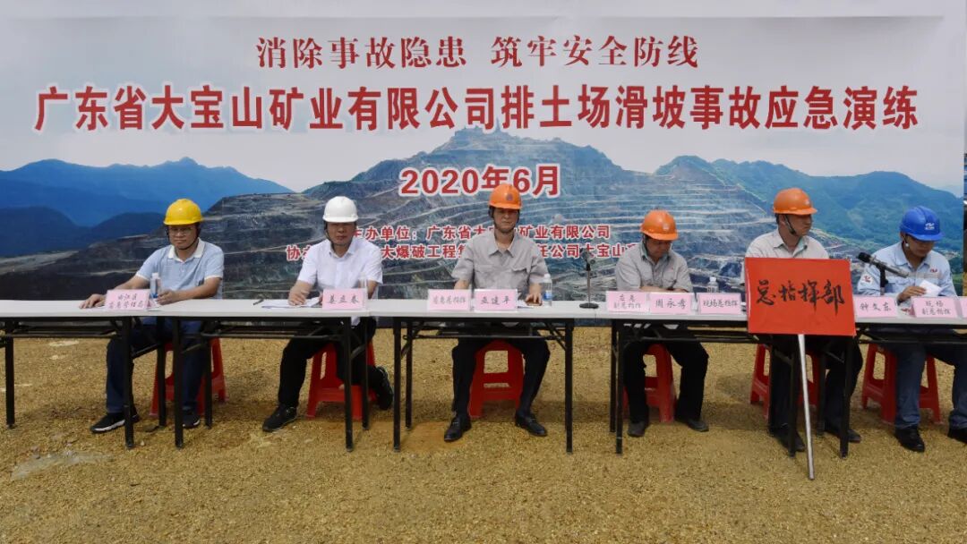 应急总指挥巫建平宣布:广东省大宝山矿业有限公司2020年排土场滑坡事故应急救援预案演练结束。