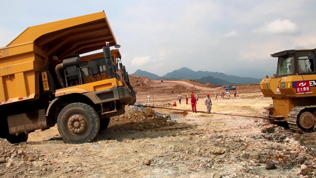 演练假设一台自卸车在757排土场中部位置排土作业时,排土平台突然下沉发生滑坡,自卸车与滑坡平台下滑约3米,司机跳车逃生时,右脚受伤被困在作业平台下面。应急指挥部启动《广东省大宝山矿业有限公司生产安全事故专项应急预案》(排土场滑坡塌陷专项应急预案),按三级预警实施救援,按照“先救人再设备”的原则,将受伤司机成功救出后,再将自卸车拖到安全地带。