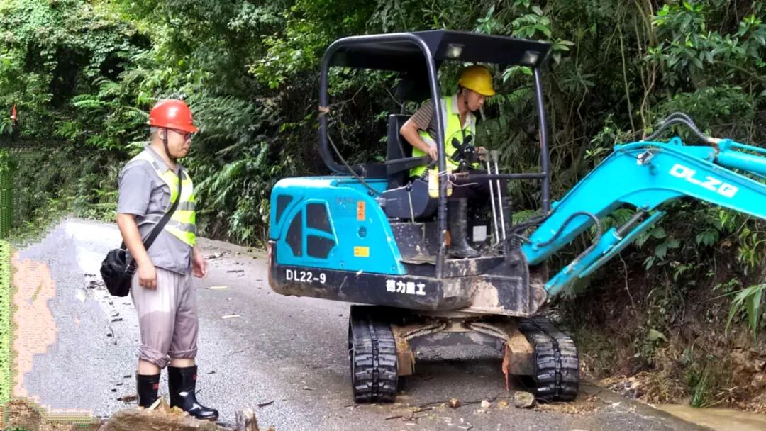 9:32,4公里路段山体继续出现塌方,2.5公里、6.2公里、7.7公里、8.4公里……一直到13公里路段均发生山体滑坡、塌方,部分路段路基被掏空,塌方险情多达23处。10:32,陆梅生带领东线公路管理科全体人员,在生产部统一协调下,着手安排机械设备到2.5公里塌方段清除淤泥障碍。陆梅生反复叮嘱施工人员一定要认真确认现场安全,时刻盯紧山体稳定状态,一旦有二次塌方的可能就立即撤离。同时,他指挥装载机加快清除各路段的淤泥,争取尽快移除险情。4公里路段首先抢通后,他与同事们又马不停蹄赶往6.2公里塌方段抢险,一班累了、二班顶上......一直坚持到夜间20:00,陆梅生才和抢修队伍撤离抢险现场。