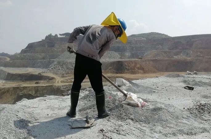 中午13点40分,正是一天中最灼热的时候,地表温度达到50℃。配矿监督工陈祥根正站在采场661/45线指挥挖机师傅装矿。不到3分钟,豆大的汗珠一颗颗从他的头上一直往下滚落,衣服打湿了一大片。他说,这是今天换的第二身衣服了,但是为了保障配矿的质量,他与其他配矿监督工克服夏日晒烤的不利条件,坚守在每一个配矿转运点,明确矿岩界线、控制原矿中锌的混入。为了高效完成任务,他们在高温下指挥装矿一忙就是一整天,有时赶上副产矿转运,他们要监督到傍晚6点多才能下山休息。