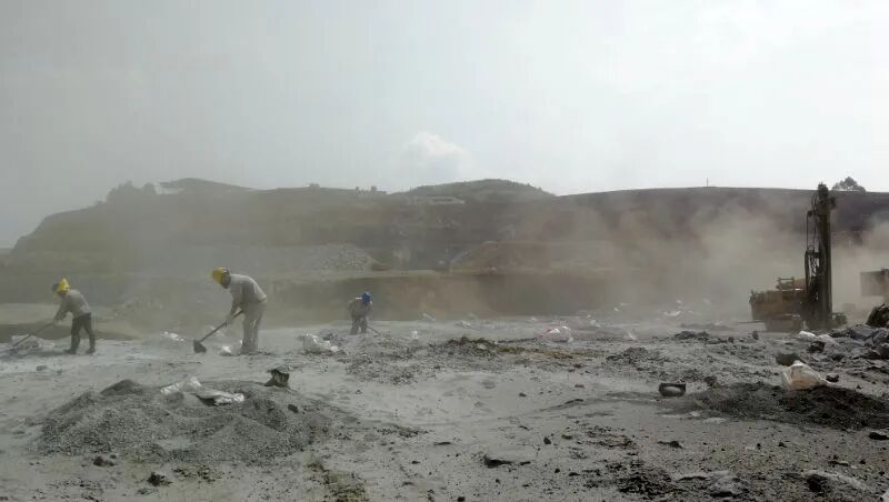 54岁的老员工陈志华抹去额头上的汗水,笑着说:“潜孔取样粉尘大,全身上下必须裹得严严实实才能开工,在太阳底下晒两三个小时很正常。最怕工作量大的时候,每个潜孔的岩粉量相当于三袋水泥,每一个孔都要像‘和水泥’一样搅拌均匀,非常耗体力;当上百个样取完,身上的工作服都能结出盐巴了。”