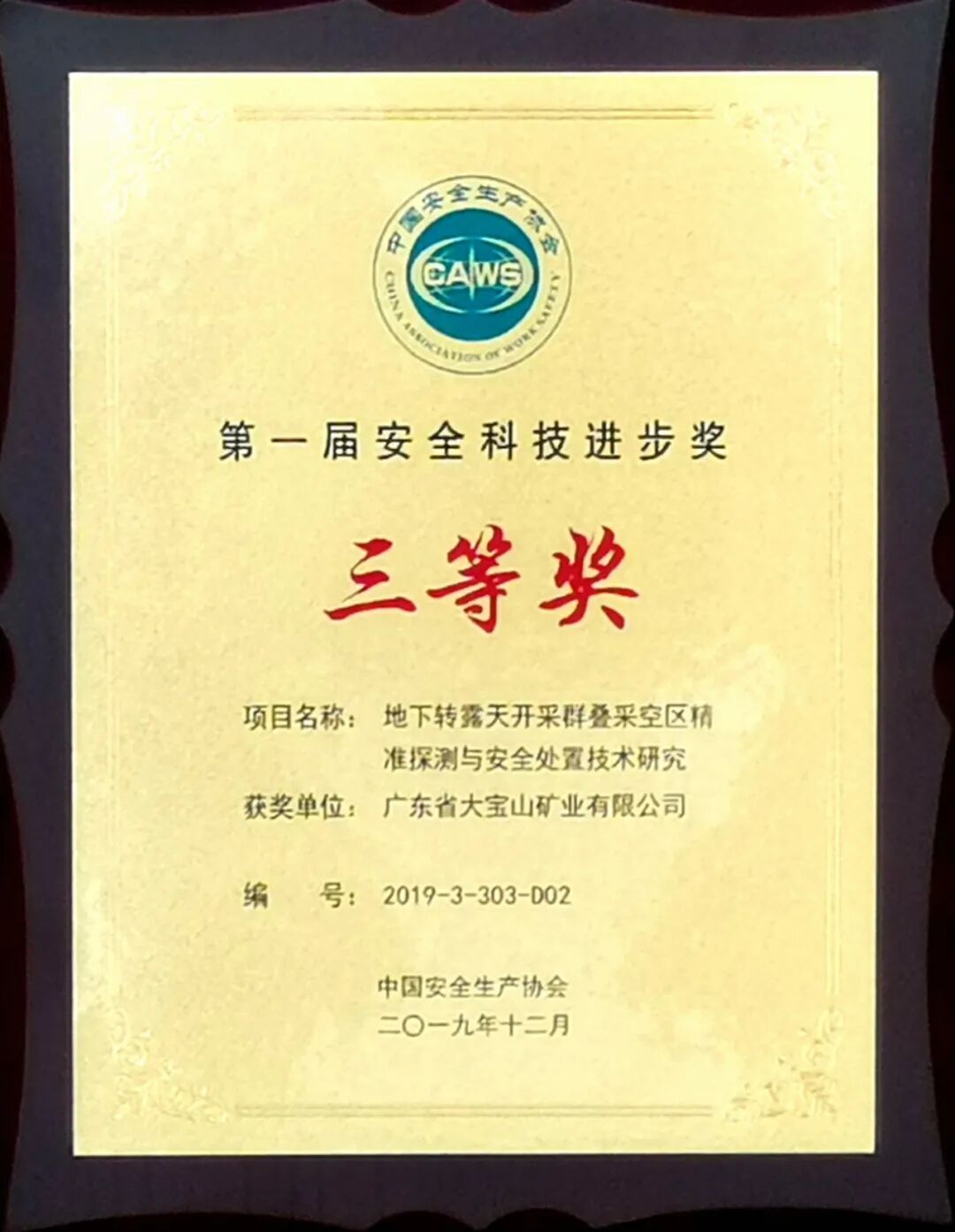 近日,中国安全生产协会(简称 中安协)公布第一届安全科技进步奖评奖获奖名单并进行授牌,公司参与完成的多个申报项目光荣上榜,夺得一等奖一项、二等奖两项、三等奖一项的优异成绩。