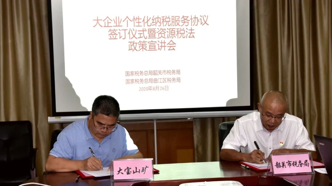 为深入落实国务院“放、管、服”工作部署,着力提升大企业个性化纳税服务质效,8月26日,韶关市税务局大企业个性化纳税服务协议签订仪式暨资源税法政策宣讲会(大宝山矿专场)在公司举行,韶关市税务局与公司签订了《大企业个性化服务协议》。韶关市税务局党委委员、总经济师李建新和市、区税务局领导,公司领导巫建平、陈晔,公司财务人员及子公司广宝化工公司财务人员出席仪式并聆听了宣讲。