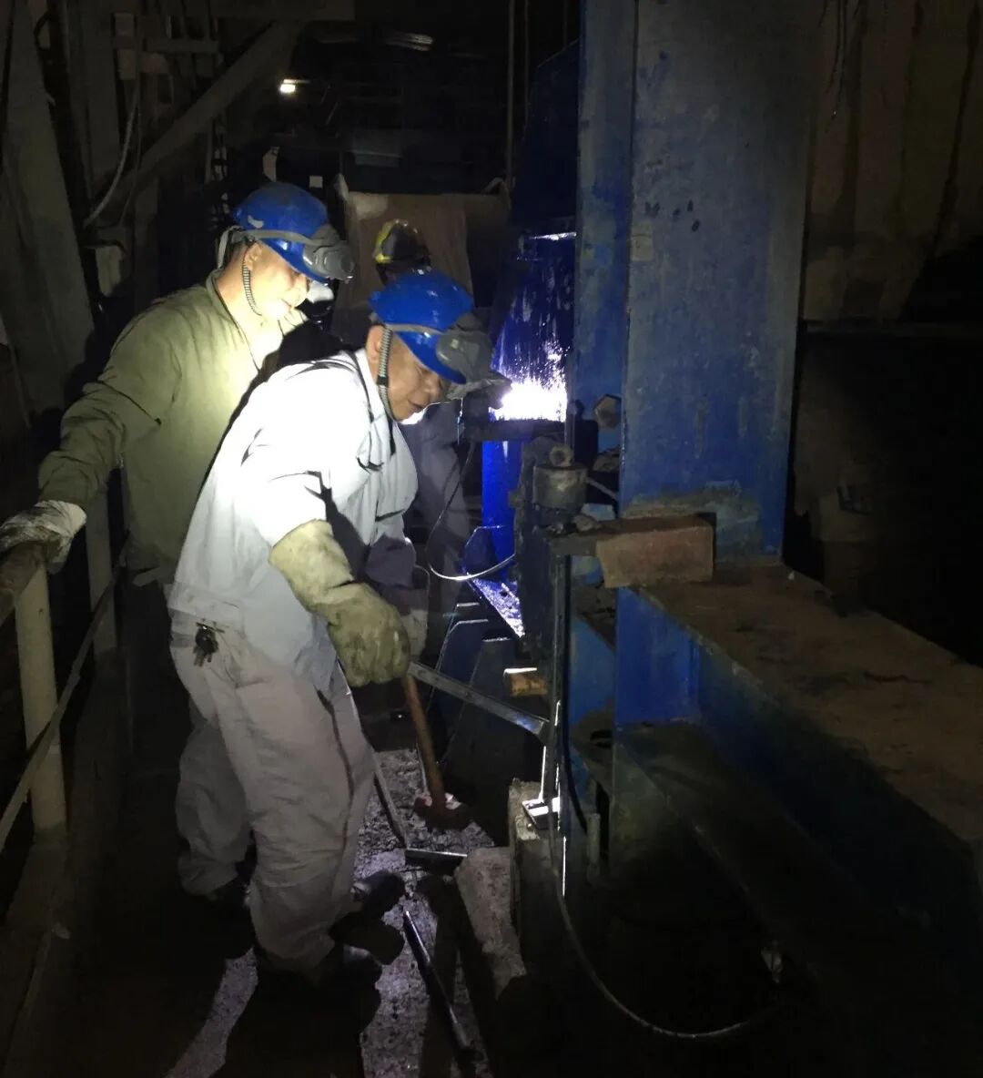 人心齐,泰山移,急风骤浪若等闲。在检修现场,焊花四溅、铁锤叮当,到处是忙碌清理拆卸、安装设备检修人员的身影。他们或是登高作业,或是在空间狭小、闷热的区域匍匐作业,个个挥汗如雨、身上油渍斑斑,但也毫无怨言。