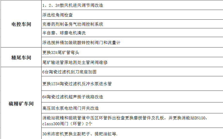 通过此次检修,对铜硫选厂之前运行中存在的问题和短板进行了全面梳理并补齐,根据生产需要对部分流程进行了改造,为选矿部完成全年生产目标打下了坚实的基础。