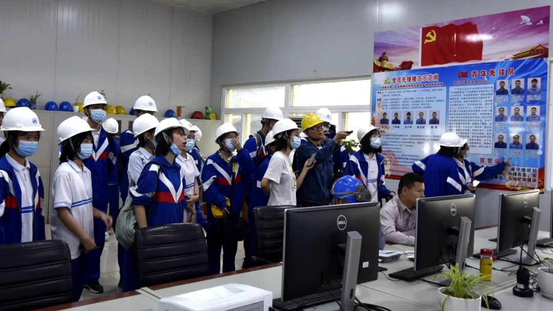 据了解,此次研学活动围绕“矿产资源综合利用”、“尾矿处理”、“生态修复”三个课题展开。师生一行首先来到采场,深入了解矿山开发历史、开采规模和企业经济效益等情况,并就地质勘探、采矿、配矿等方面和公司技术人员进行交流;在铜硫选厂,师生们在技术人员的指引下参观各生产车间,了解生产设备、生产流程和选矿工艺;在凡洞村尾矿库,师生们现场了解尾矿库的工作原理和作用意义。整个参观过程中,学生们与技术人员、管理干部积极互动,对工艺细节和关键流程展开追问并讨论。他们表示,每一块矿石开采的背后都蕴藏着采矿人的辛勤汗水,大宝山矿历经六十余年的开采依然经久不衰,开采场景震撼人心。