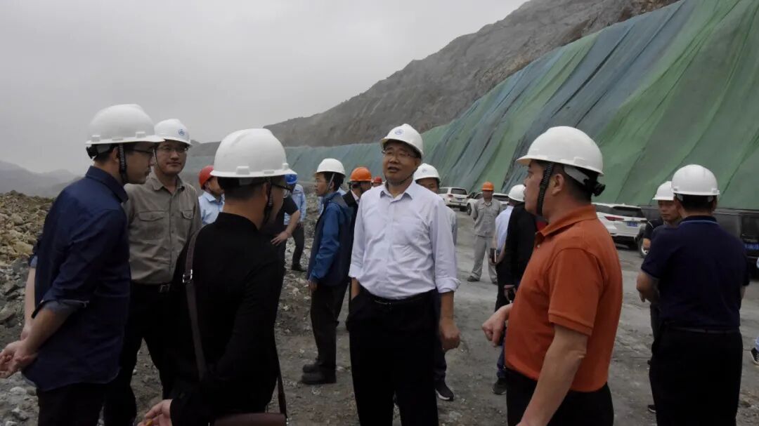 专家组在公司党委书记、执行董事、总经理巫建平,广晟有色副总裁喻鸿,公司副总经理周永孝与相关单位负责人的陪同下,先后前往采场、排土场、凡洞村尾矿库等地对330万t/a铜硫采矿工程项目中的露天采场工程、矿岩运输系统、供配电系统、排土场(453坡脚坝工程、截水沟、排水沟)等重点工程进行实地核查。